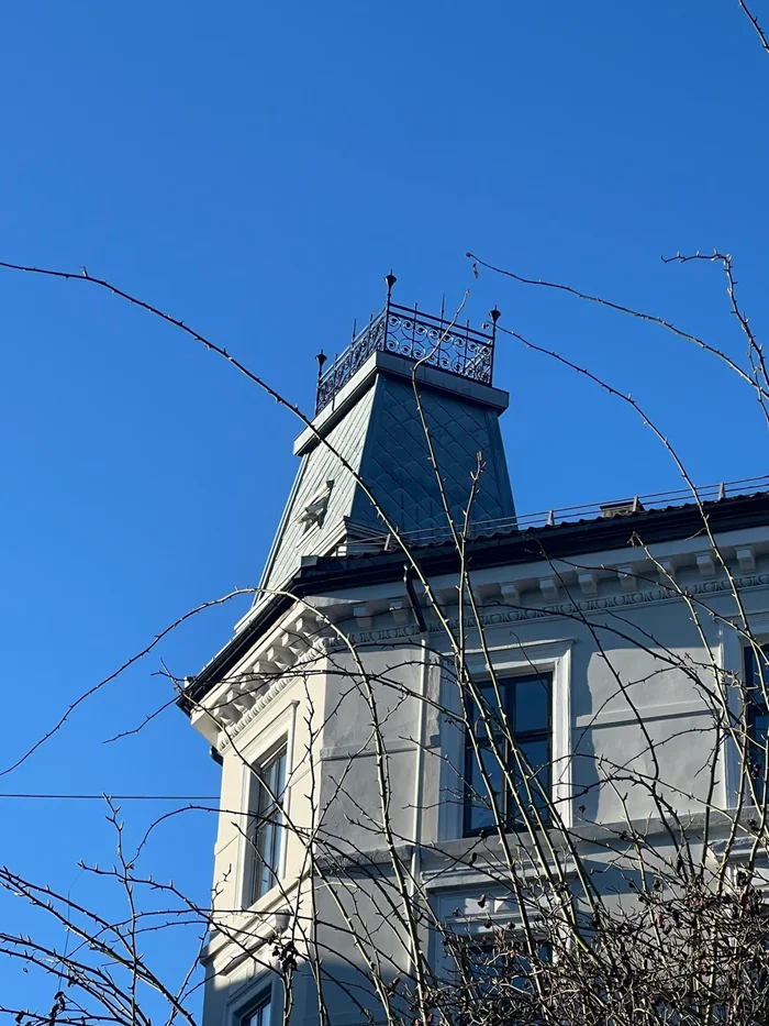 Это "вдовья смотровая площадка" или "вдовий балкон" (дословно "вдовья прогулка") - архитектурный элемент, встречающийся в прибрежных городах США и не только. По сути - огороженная площадка для того, чтобы посмотреть на море, позагорать или побыть на свежем воздухе. По легенде, на такие часто залезали жены моряков, когда отчаянно ждали их, постоянно залезая наверх, но порой не дожидались. Поэтому и "вдовья".