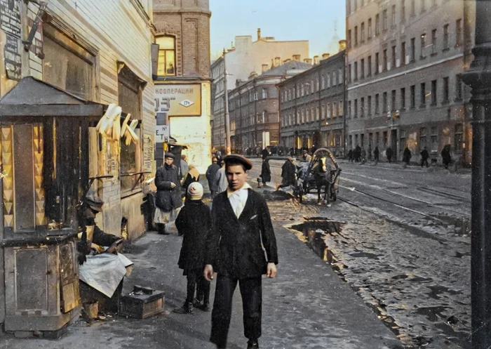 Фотография получилась очень живой и настоящей. На заднем плане парикмахерская, которая была здесь и до революции, и всё советское время, немного не дожила до 21 века и была закрыта в 90-е годы.