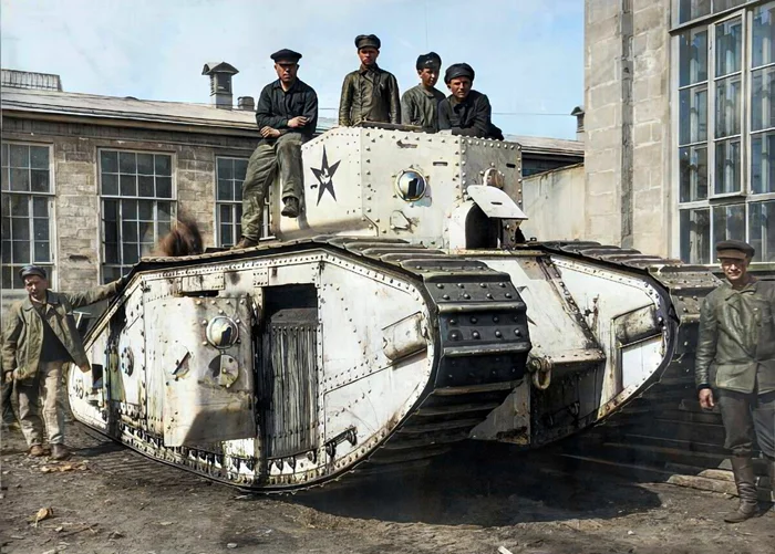 Британский танк МК-В на территории ремонтного завода в Филях, 1920 год.