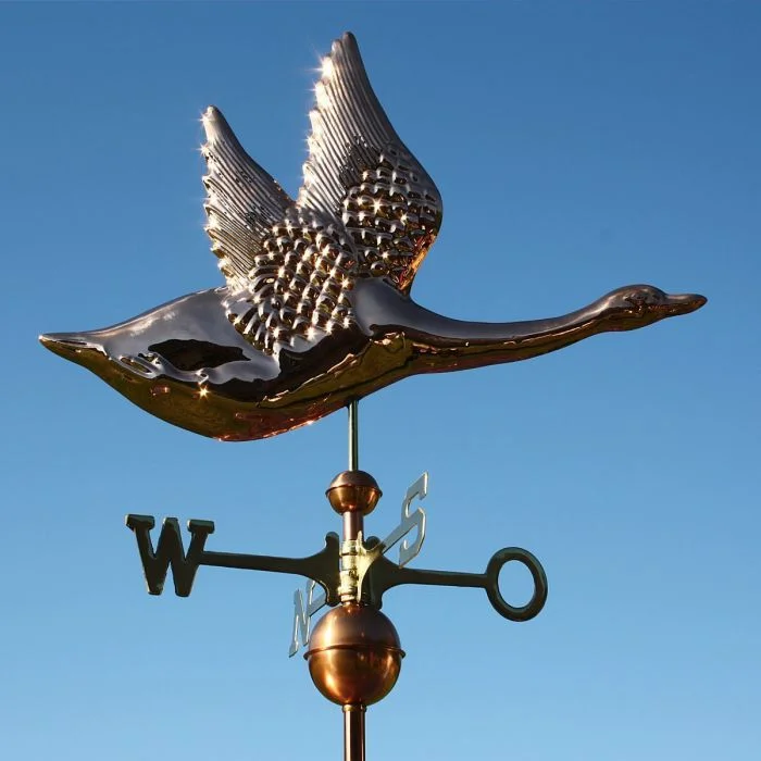 Считается, что прибор, название которого в переводе с голландского (vleugel) значит «крыло», был придуман в Афинах более 2 тыс. лет тому назад. Он изображал древнегреческого бога Тритона – сына сын Посейдона и Амфитриты, вестника глубин.У разных народов флюгеры изображали разные символы – богов, мифических животных, сказочных существ. Постепенно они заняли своё место и в геральдике.На Руси флюгеры появились в XIII веке и изначально имели строго вид флага. Но постепенно перечень форм расширился. И в наши дни они стали настоящими произведениями искусства и поражают воображение множеством форм, начиная с классических и заканчивая фантазийными.