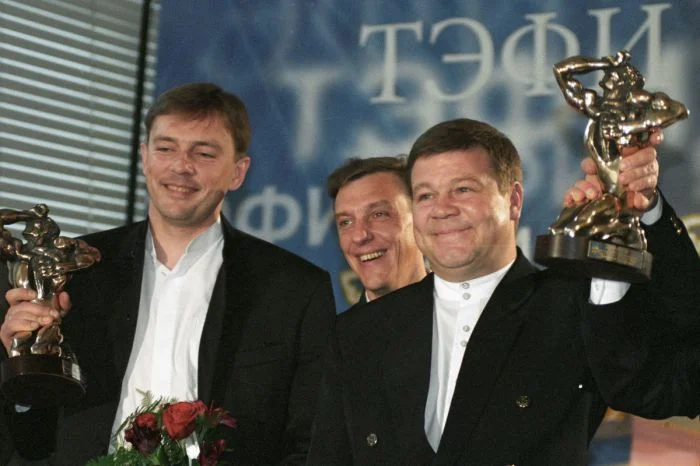 Алексей Нилов, Александр Половцев и Сергей Селин на вручении премии ТЭФИ-99 за сериал "Улицы разбитых фонарей", 1999 год