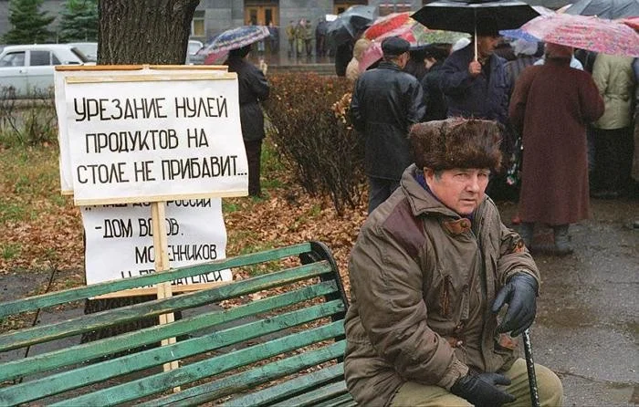 Участник митинга против деноминации рубля, Оренбург, 1997 год.