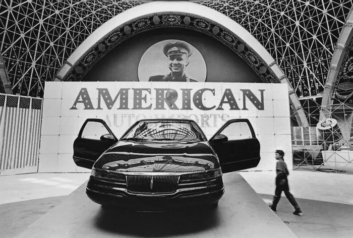 Такси на ночной улице столицы, фото середины 1990-х. Как видите, это пока еще советский автопарк.