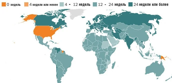 17. Страны, которые предлагают женщинам оплачиваемый отпуск по беременности и родам, и время, которое предоставляют матерям на декрет