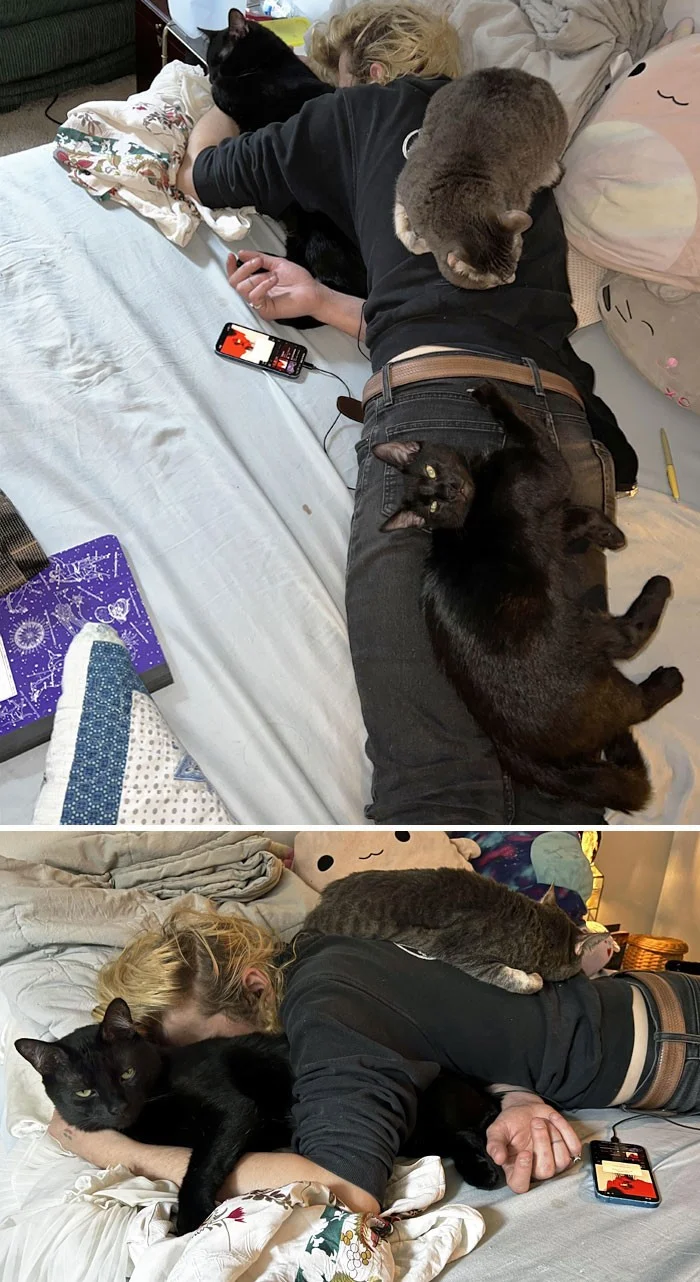 3. "Мой муж просто заснул. Коты: атакуем!"