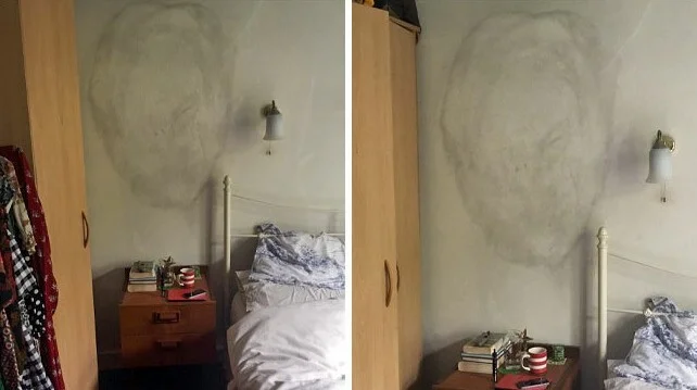 20. "Мой парень просто попытался оттереть маленькое пятно на стене, и теперь у нас есть этот "портрет" во всю стену"