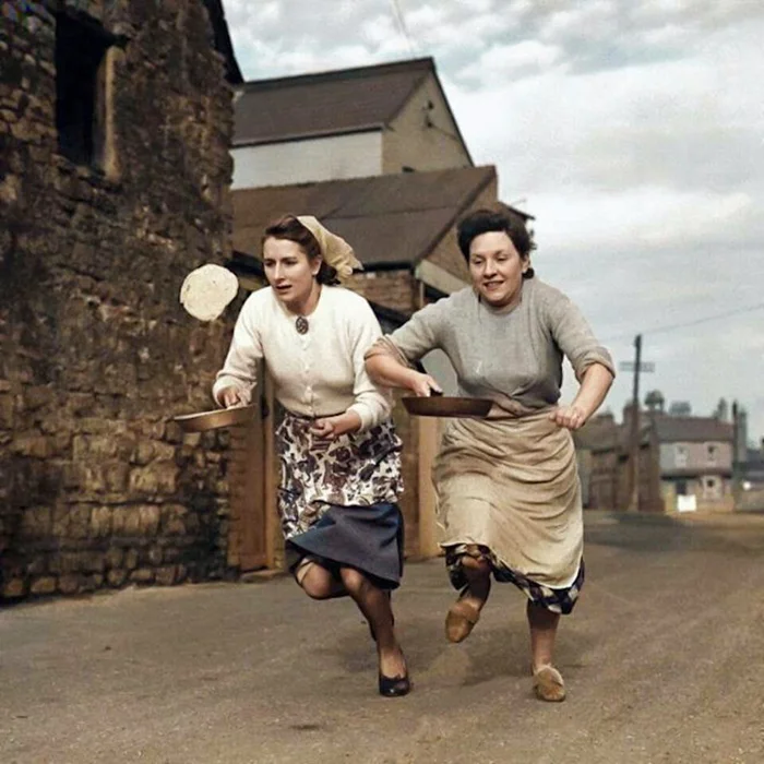 В забеге участвовали местные домохозяйки: они обязательно должны были надеть фартук и поварской колпак. В руках каждая держала сковороду с горячим блином, и нужно было успеть трижды подбросить его во время забега. А главное — не уронить на землю! Кто из женщин первой прибежит к церкви — та и победила.