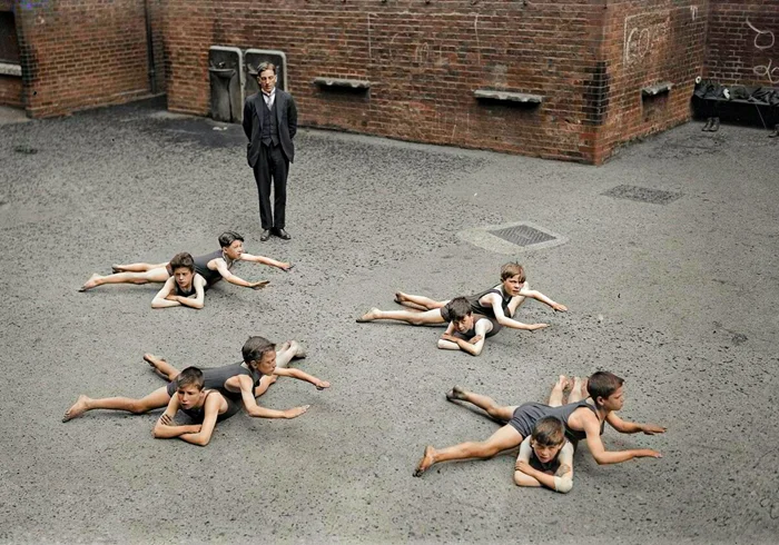 Школьники учатся плавать при отсутствии доступа к воде, 1922 год.