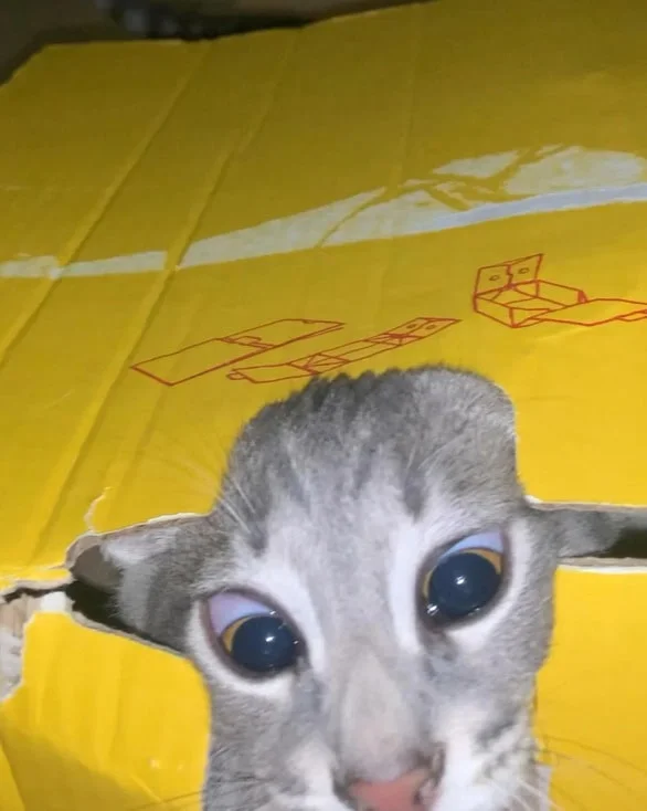 Мой котёнок вбегает в коробку, пытаясь выбраться из маленькой дыры
