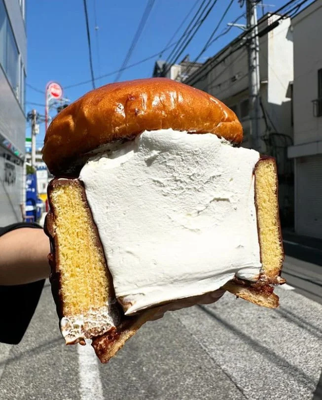 Сладкий бургер Баумкухен с шоколадом и взбитыми сливками