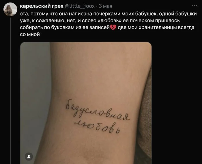 А вы можете поделиться чем-то подобным? Есть любимые татуировки?