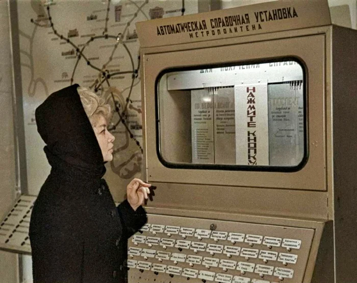 Автоматическая справочная установка на станции метро "Комсомольская", 1967 год.