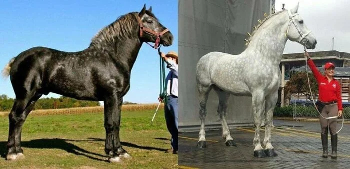 18. Лошадь породы першерон. Это одна и та же лошадь с разницей в 5 лет: по мере взросления у них меняется окрас