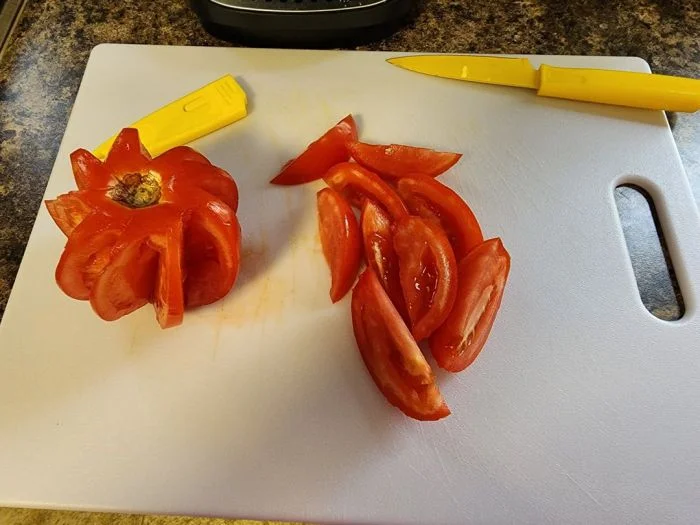 Это напоминает метод нарезки цитрусовых, называемый «супрем». Это единственное рациональное объяснение того, почему кто-то порезал помидор вот так.