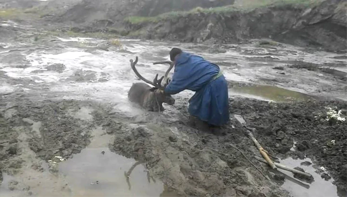 10. Мужчины спасли оленя, застрявшего в Ямальском болоте