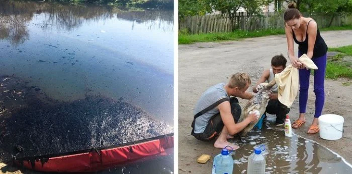 14. Жители Бреста вымыли лебедей, пострадавших от нефти
