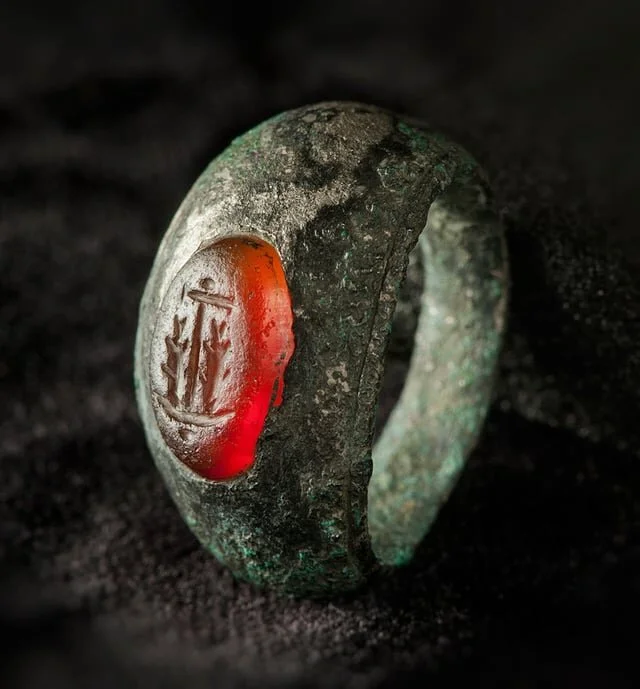 Серебряное кольцо с изображением двух рыб, висящих на якоре. Сделали украшение примерно в 3 веке нашей эры
