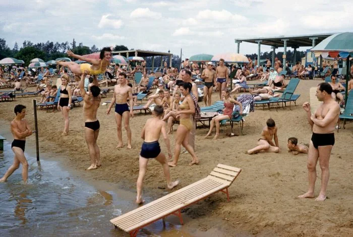 4. Открытие бассейна "Москва" не отменяет традиционных любимых мест сбора москвичей летом. На пляже в Серебряном бору.