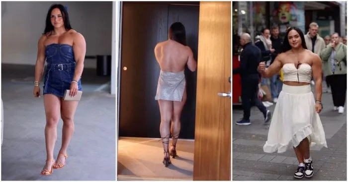 Она регулярно выкладывает также фото в женских образах (платьях и юбках), но довольно сложно оценивать её сексуальность, ведь даже походка у неё "тяжёлая".