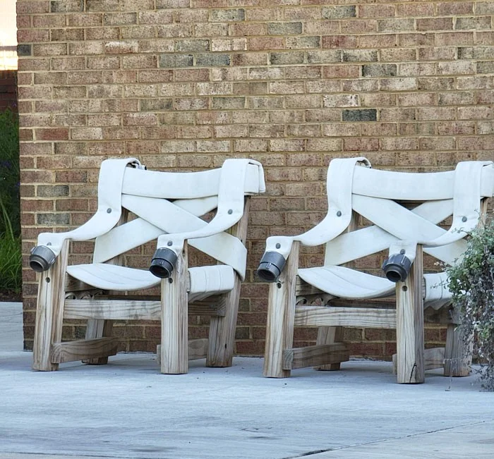 8. «Стулья, сделанные из старых пожарных шлангов, рядом с пожарной станцией»