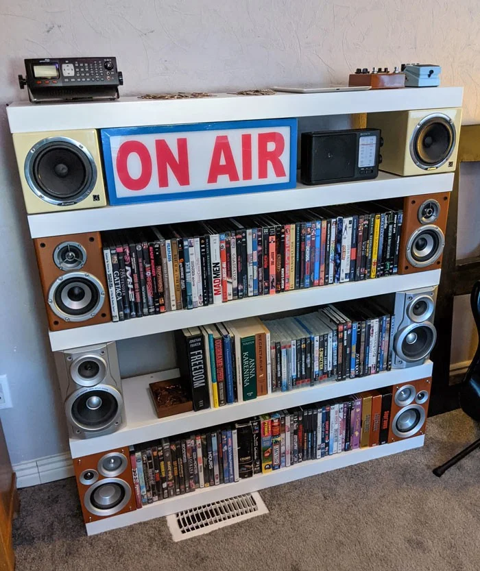 13. «Я сделал стеллаж, используя старые колонки из секонд-хенда»