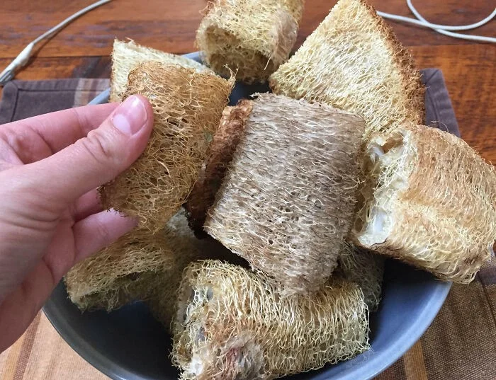 15. «Мы сажаем люффу, сушим плоды и используем эти мочалки для мытья посуды. 5 растений хватает примерно на 2 года. Полностью биоразлагаемы»
