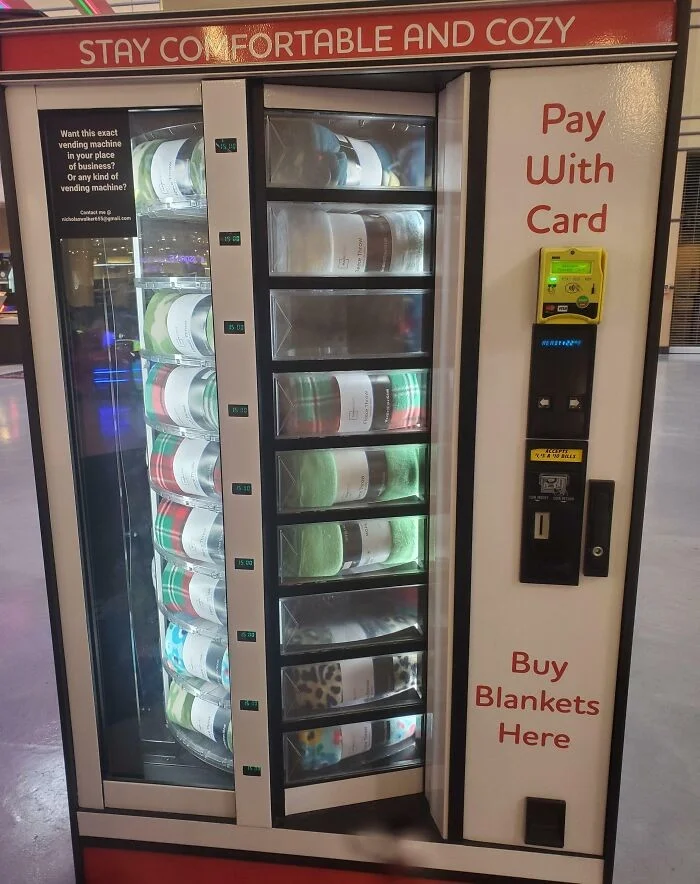 Когда мы думаем о вендинговом аппарате, то, как правило, представляем себе автомат по продаже напитков или снеков. Но видели ли вы когда-нибудь торговый автомат, до отказа набитый теплыми пледами или наваристым бульоном для рыбного супа?