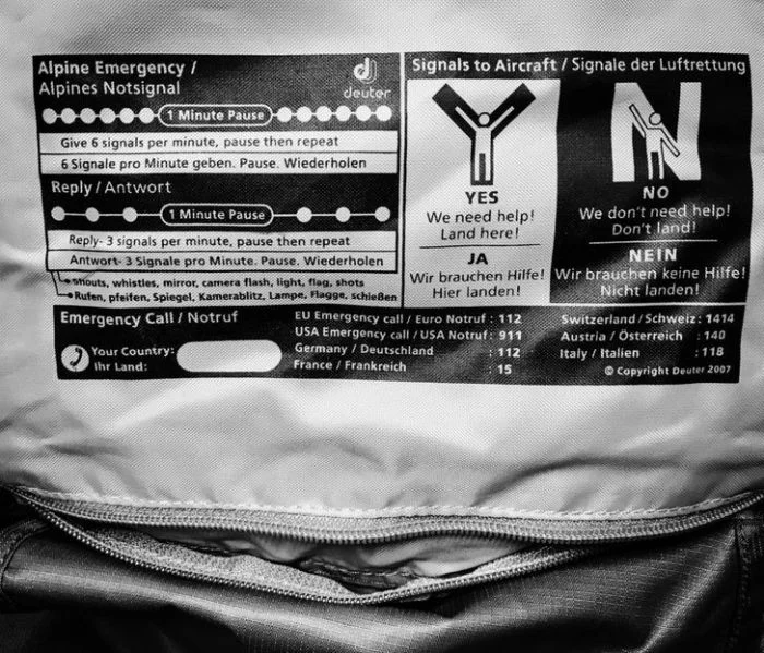 12. Этикетка с инструкциями по выживанию, которая находится внутри походного рюкзака