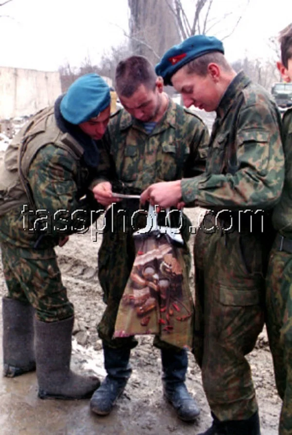 Воины-десантники Федеральных сил получили письма из дома. Грозный, декабрь 1995 год.