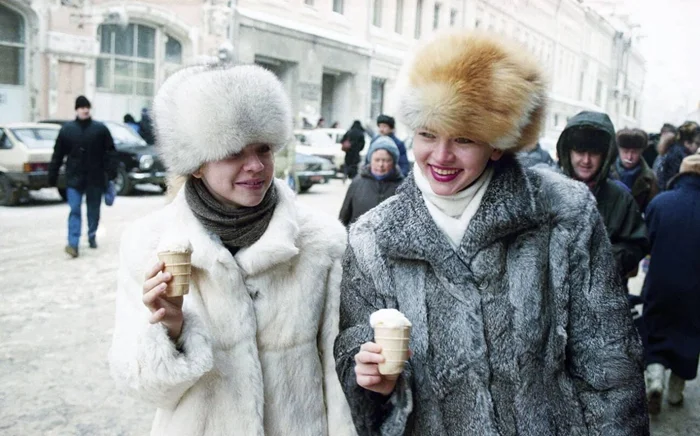 Девушки в шубах от торгового дома «Унивест». Тюмень, 1994 год.