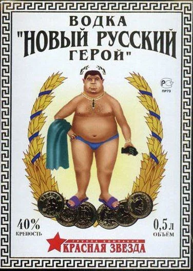 Этикетка водки "Новый русский герой". Россия, 1990-е годы..