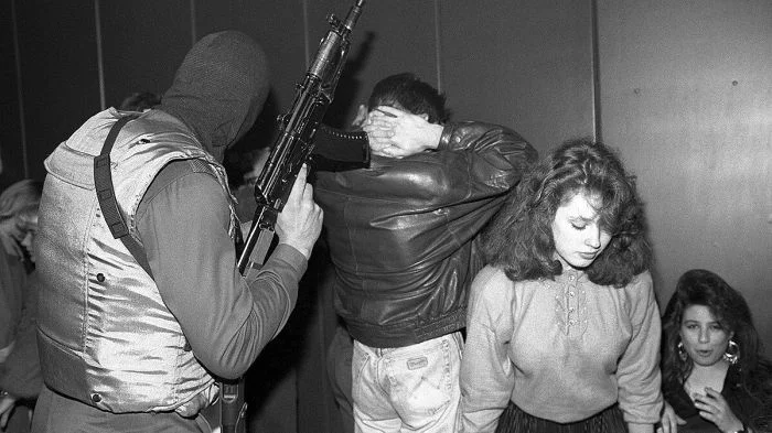 23. Бойцы московского ОМОНа производят задержание на дискотеке, 1993 год.