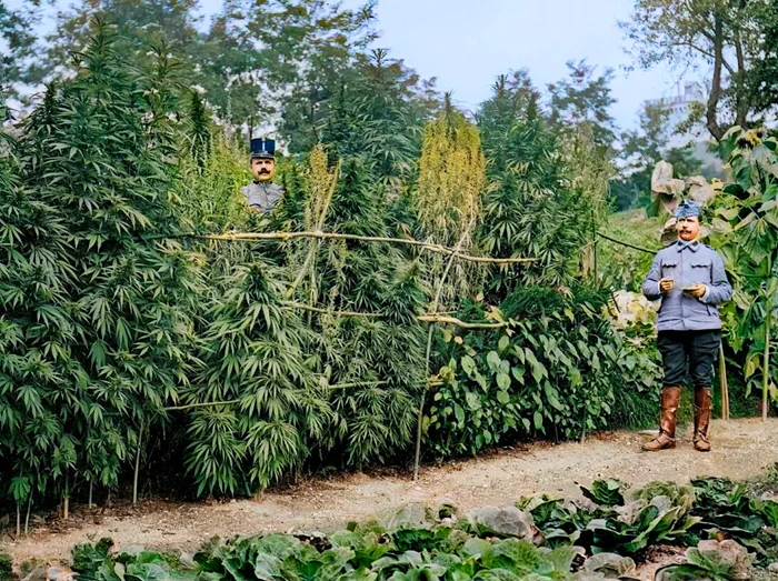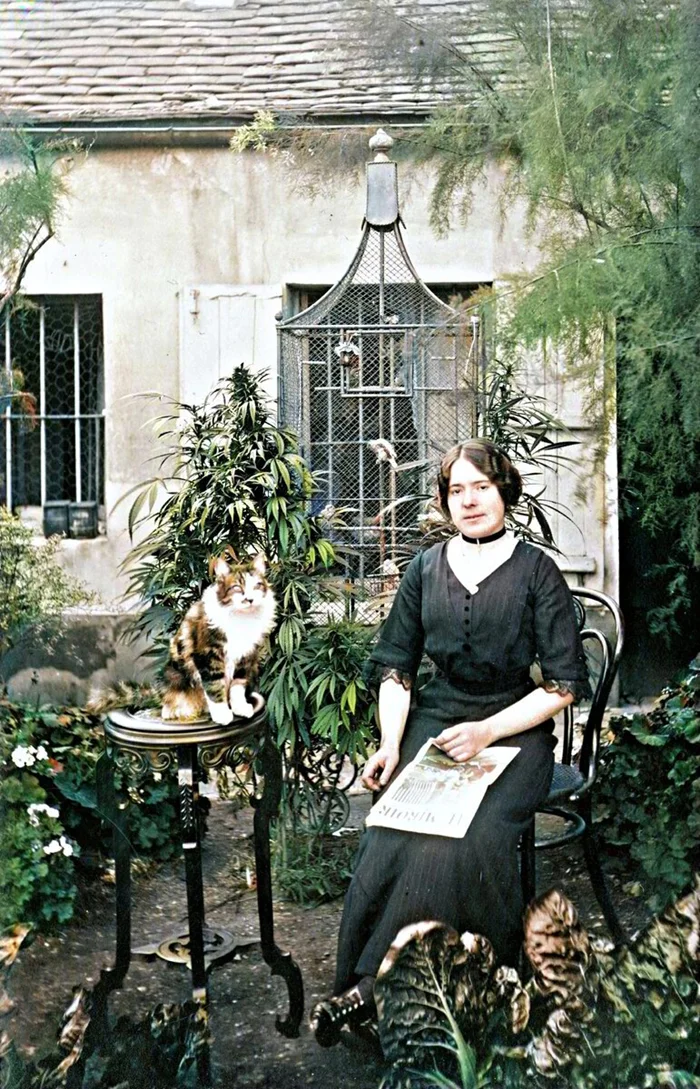 Парижанка со своей кошкой в саду с каннабисом, 1910 год.