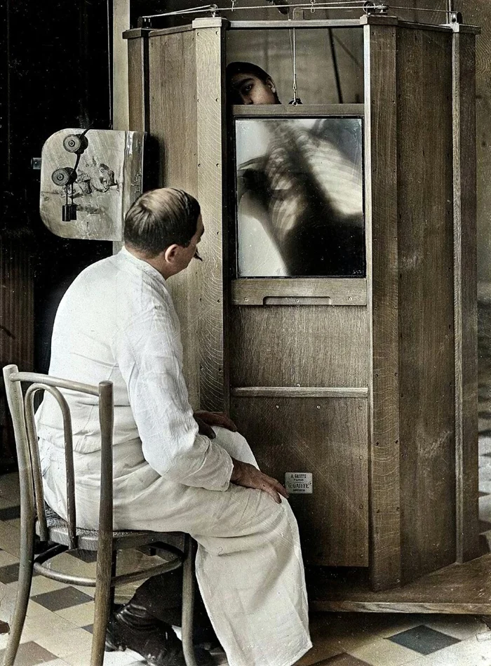 Рентген грудной клетки в больнице Кошен, Париж, 1914 год.