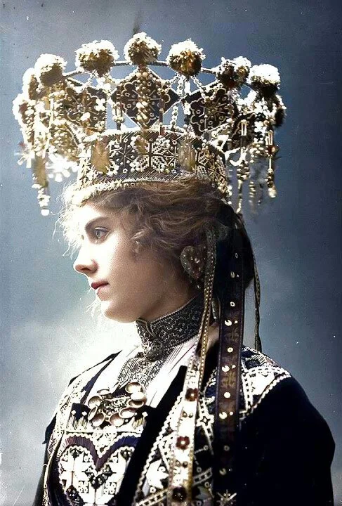 Традиционный свадебный наряд норвежской невесты. Фото около 1900 года.