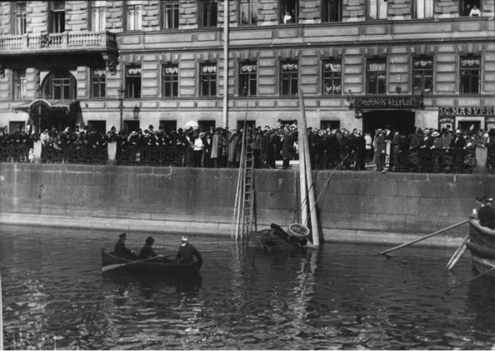 3. Событие по тем временам уникальное. Машин - по пальцам пересчитать, а тут одна из них ещё и в Мойку свалилась. Наверняка, пол-города собралось.