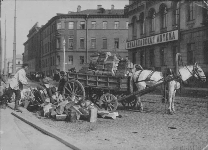 26. На угол набережной реки Фонтанки и Измайловского проспекта на подводе привезли дрова.