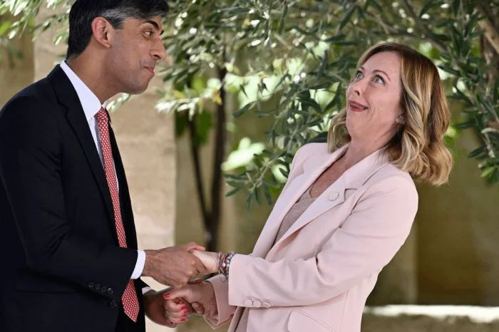 2. А это премьер-министр Великобритании приветствует премьер-министра Италии на 50-м саммите G7