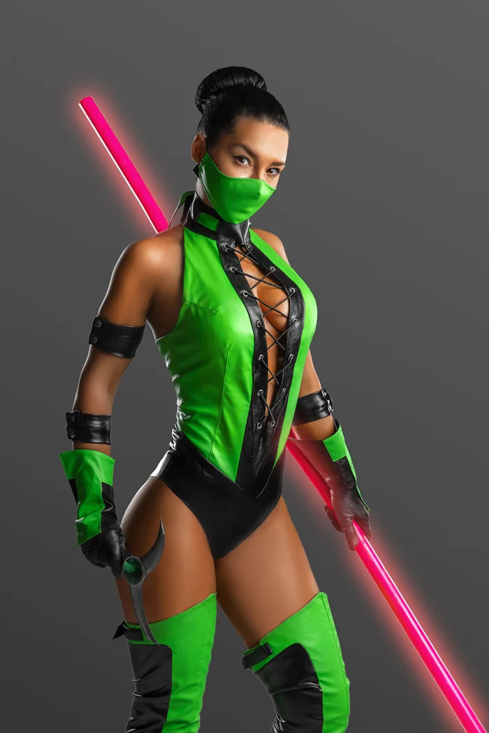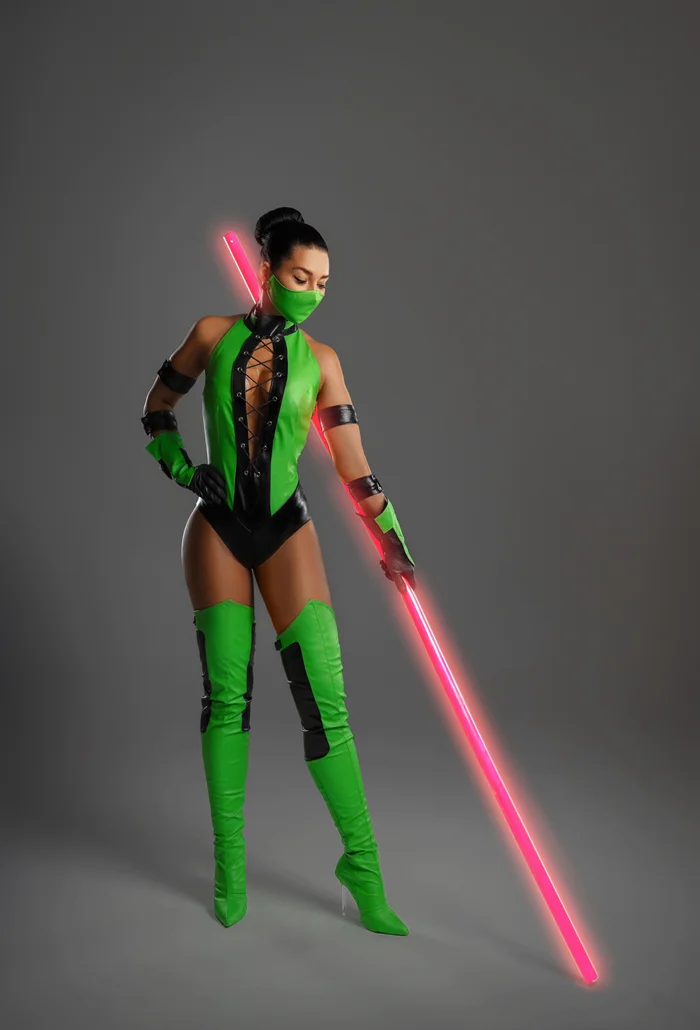Косплей на персонажа Джейд из игры Mortal Kombat 3 Ultimate