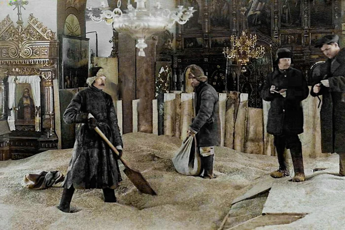 Зернохранилище в одном из православных храмов, 1920-е годы.