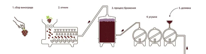 Чтобы было понятнее, так в общих черта выглядит процесс приготовления первичного винного материала.
