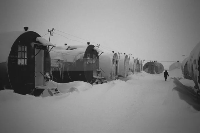 4. «Дома-бочки» Бованенковского газоразведочного лагеря, Тюменская область, 1992 год.