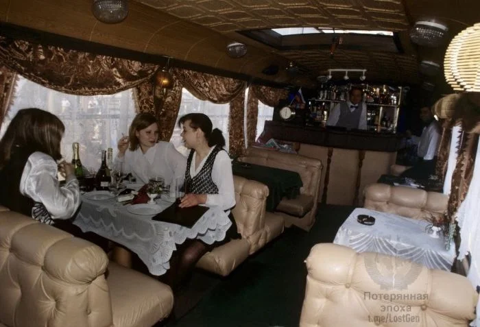 10. Барышни, посетительницы знаменитого трамвая-ресторана на Чистых прудах, 1998 год