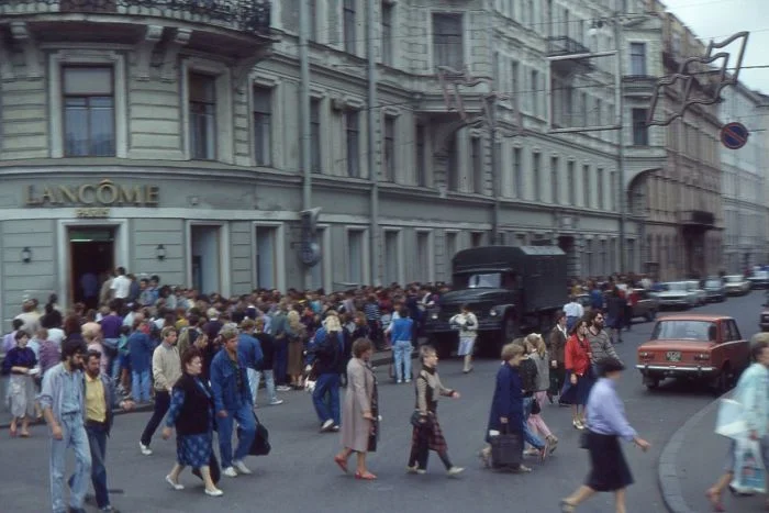 13. Очередь в фирменный магазин Lancôme в Ленинграде, 1991 год