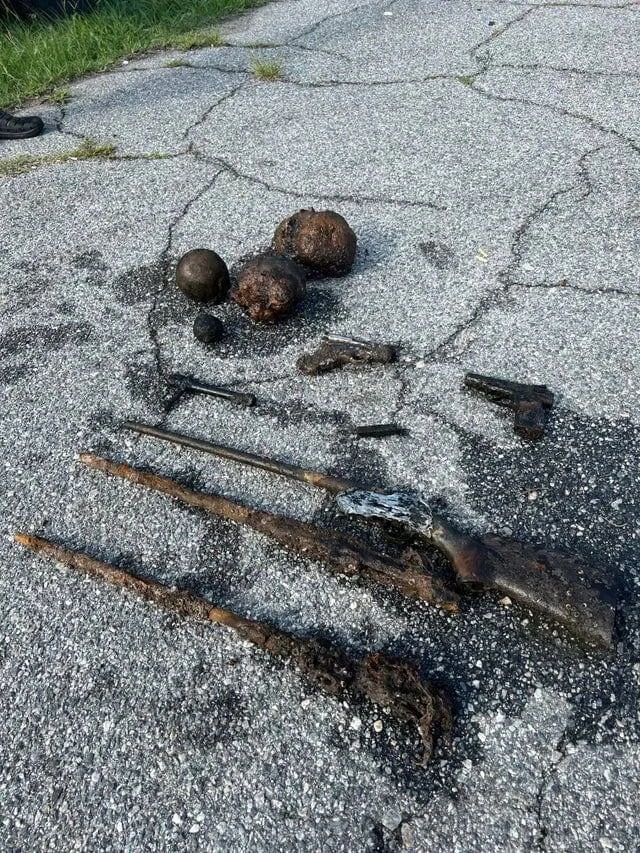 У нас был нереальный день магнитной рыбалки! Найдено 5 пушек и 3 пушечных ядра времён гражданской войны