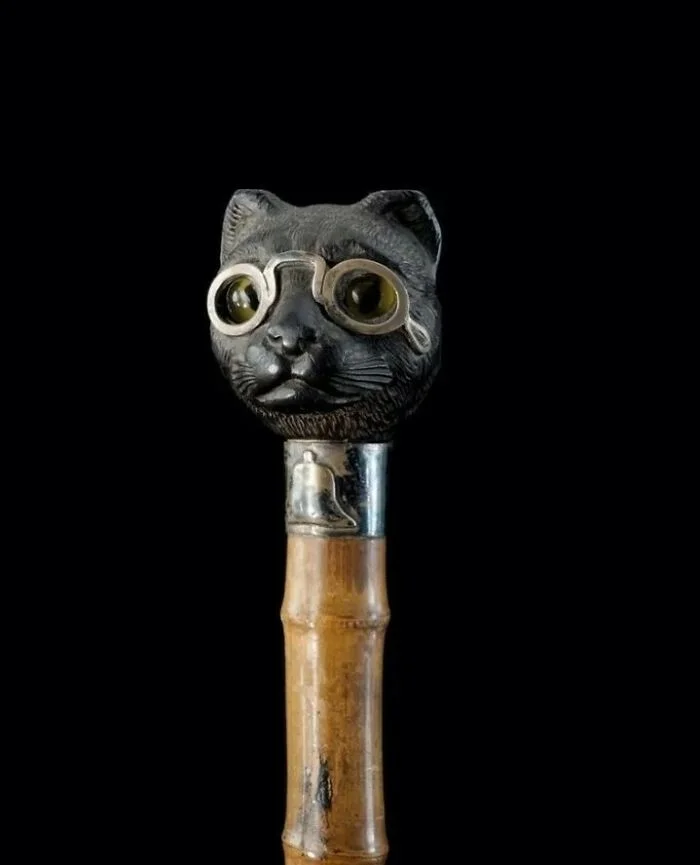2. Трость для ходьбы XIX века с изображением кошки в очках