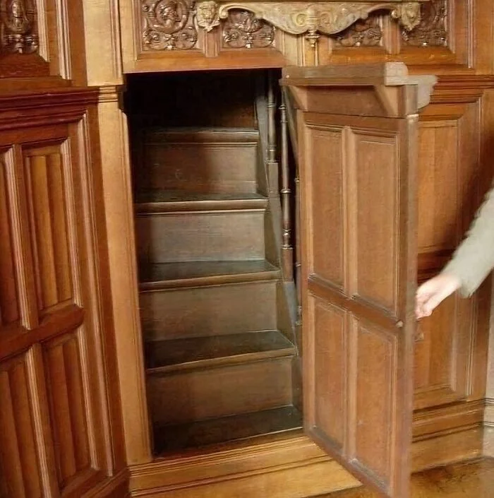 4. Скрытая лестница в викторианском доме XIX века, ведущая в потайную комнату