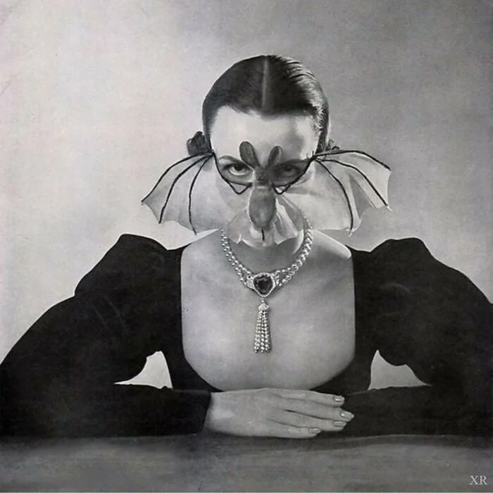 21. Маска «Летучая мышь» из немецкого журнала мод 1951 года. Маска была создана французским визажистом Фернаном Обри
