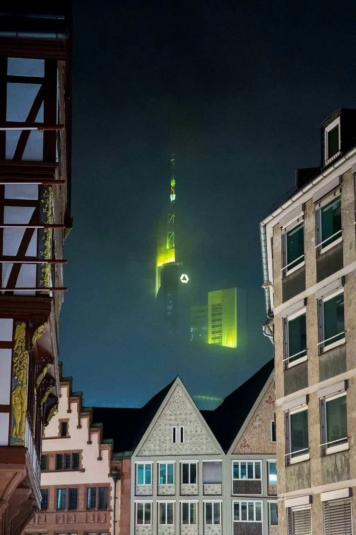 Вид на небоскрёб Коммерцбанк-Тауэр в немецком Франкфурте-на-Майне