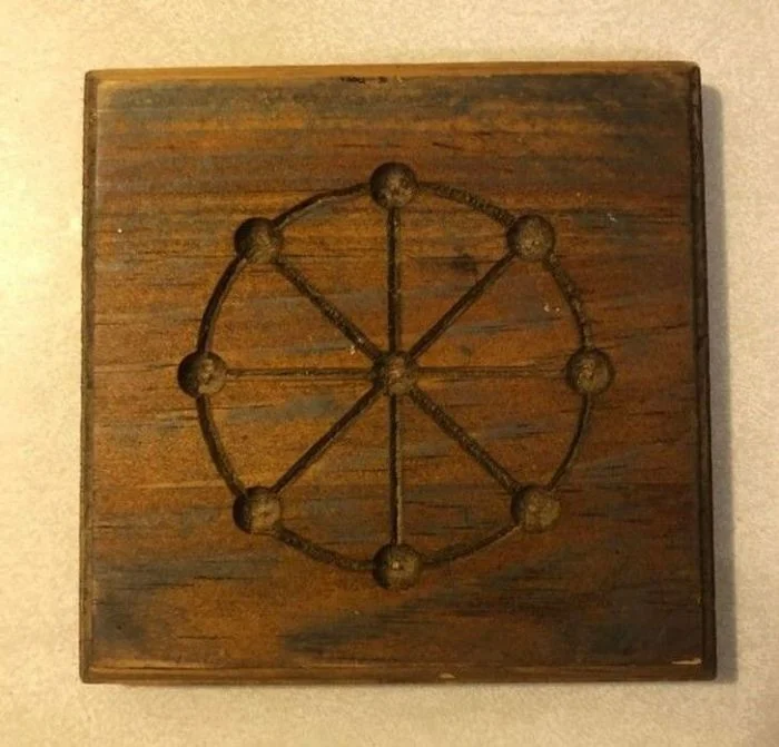 Это игра "Круг", она существовала еще в Древнем Риме, а кое-где популярна и сейчас. Там не хватает фишек, которые для победы надо выстраивать на поле в определенной последовательности".
